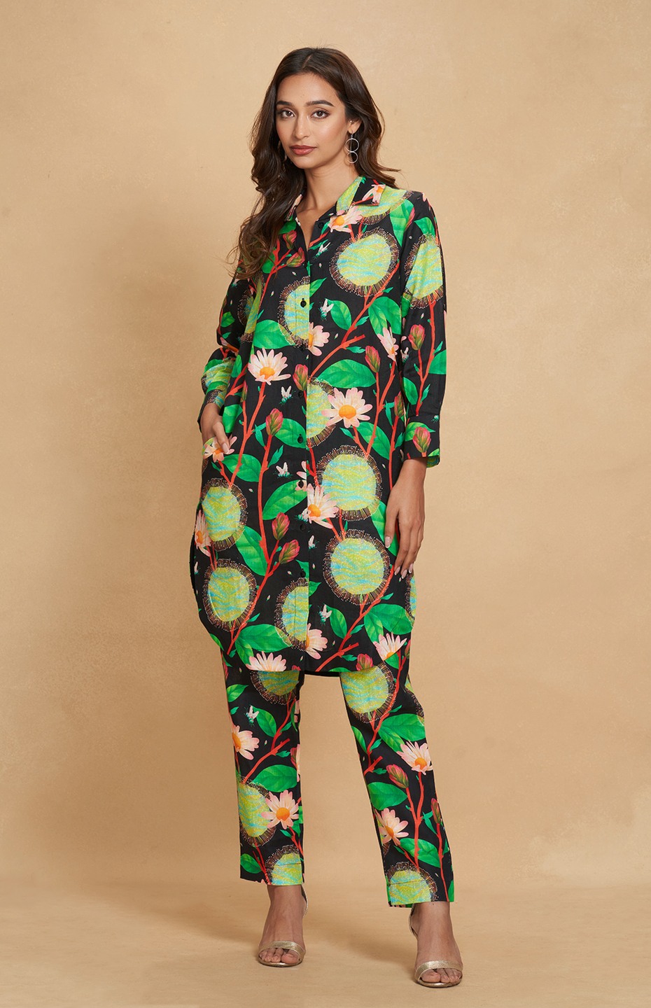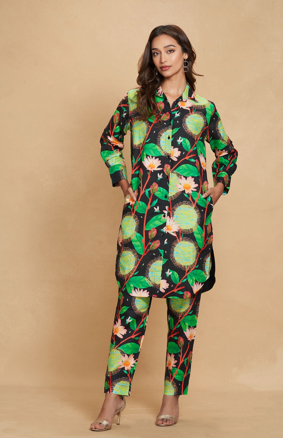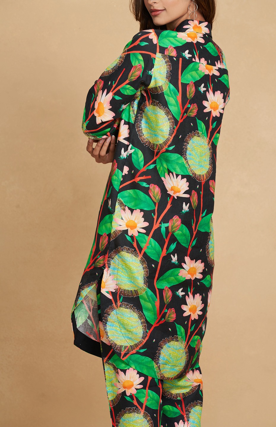 Embrace timeless elegance with this Kadam-printed linen shirt dress. Merging the ease of a shirt with the allure of a dress, it's a versatile piece perfect for any occasion, effortlessly transitioning from day to night.Collection:Ethereal KadamPieces in Set: 1Fit:RegularType of Work: Digital PrintColour: BlackFabric: 100% LinenGarment Care: Cold Wash