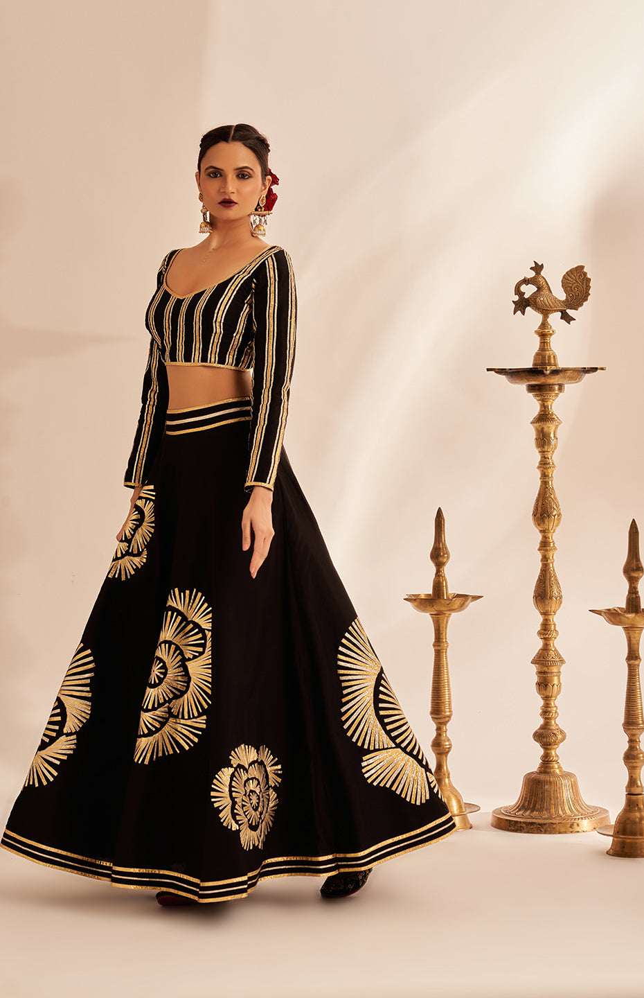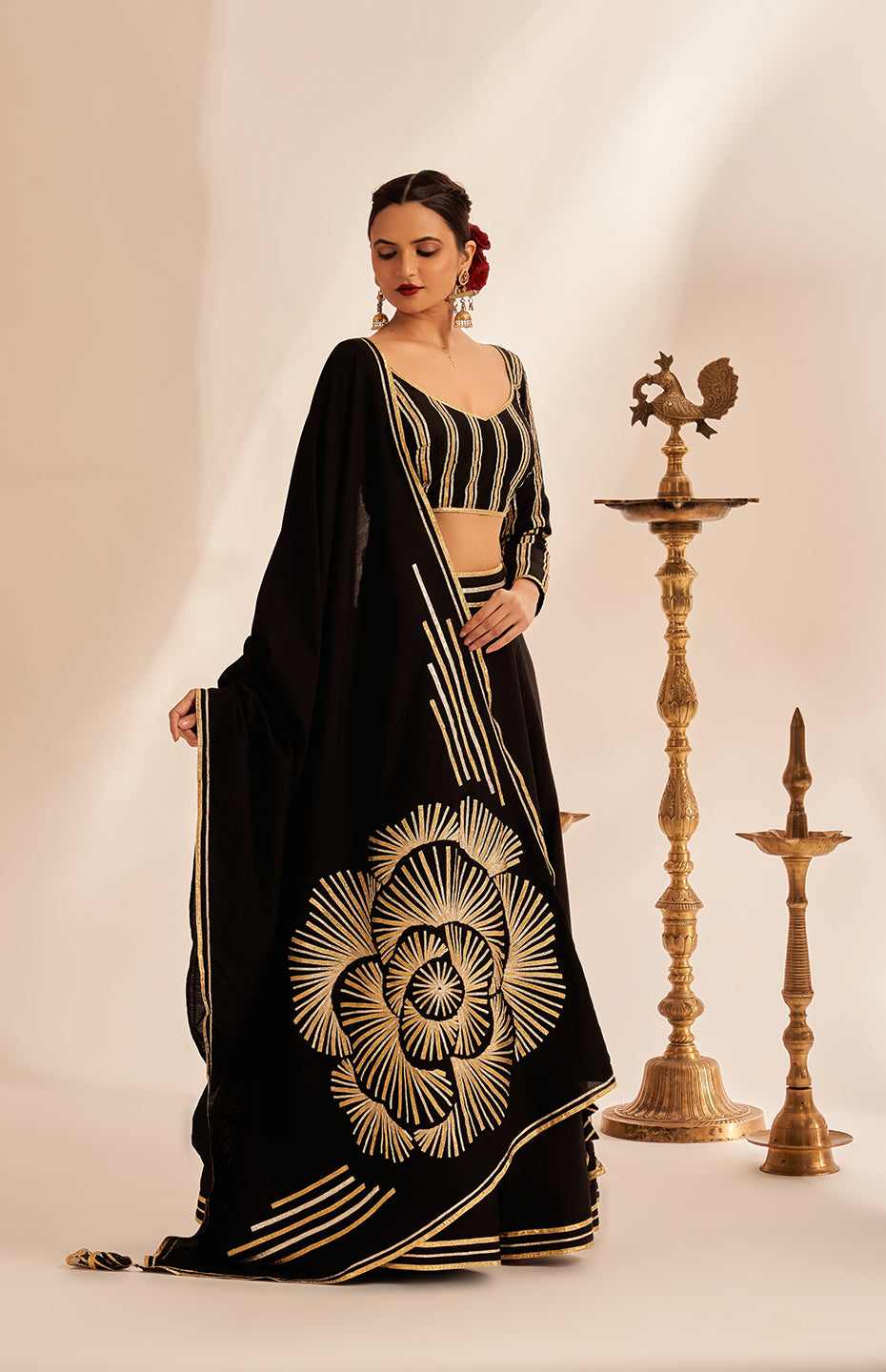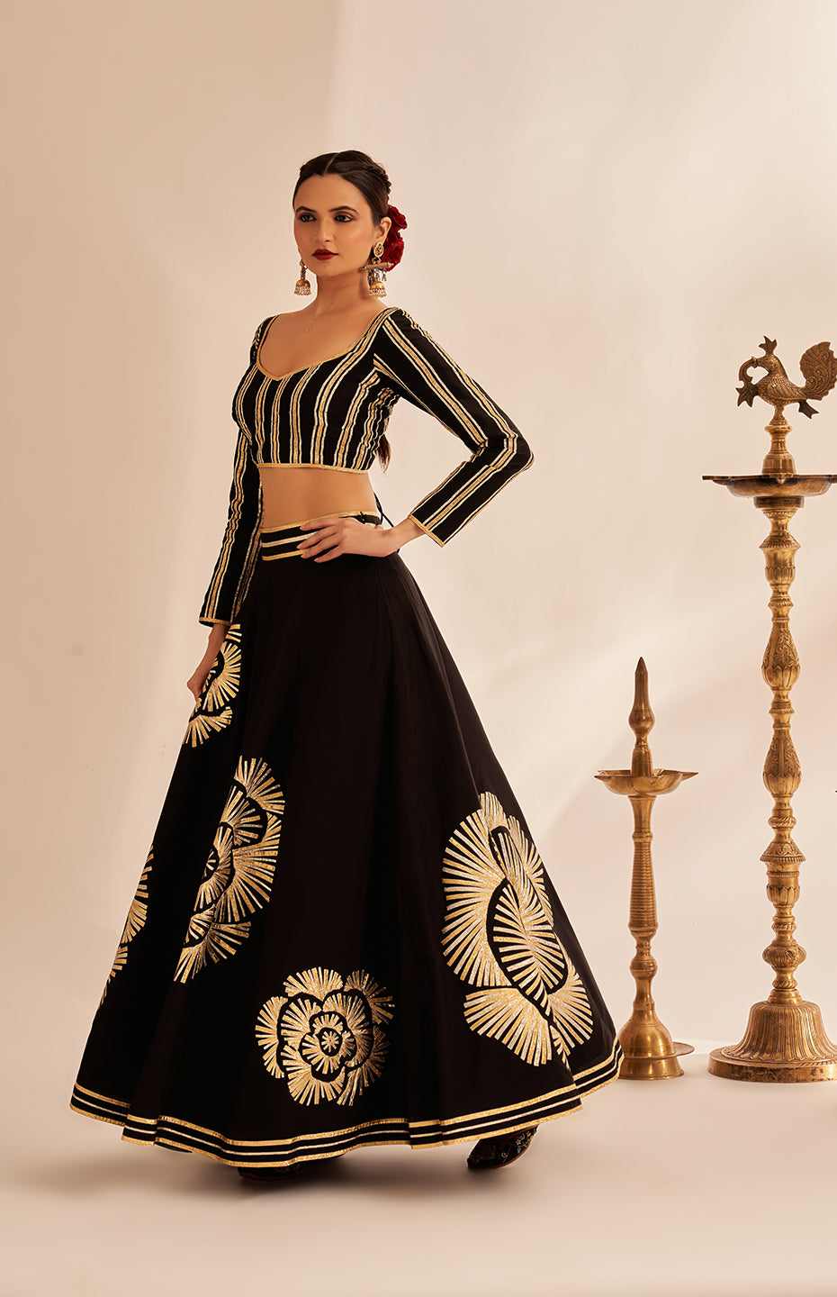 Our Kali Skirt from the Rose Gota collection is a true work of art. It features the brand's signature classic Gota detailing, reimagined with a stunning Rose motif that is sure to turn heads.
