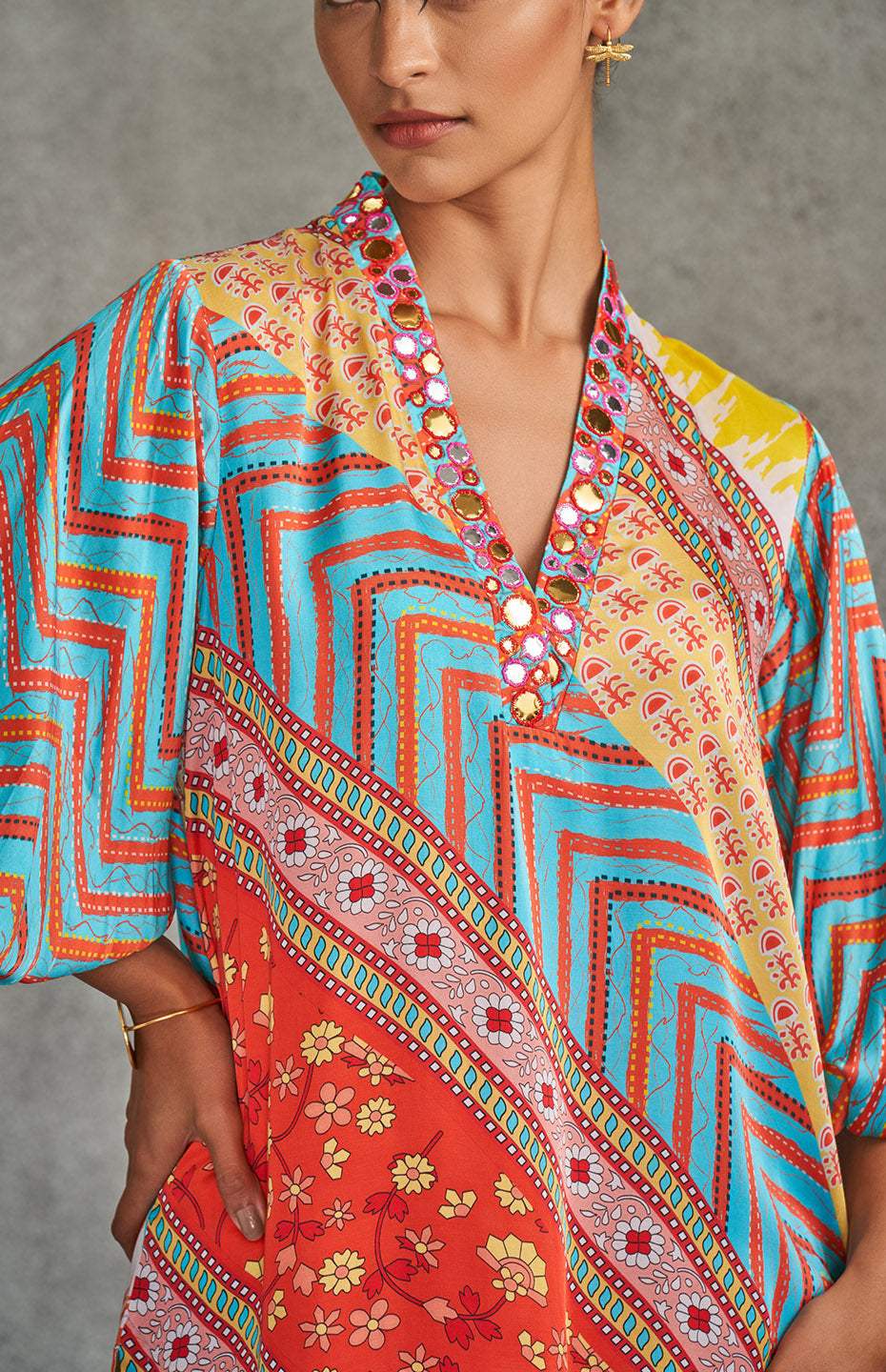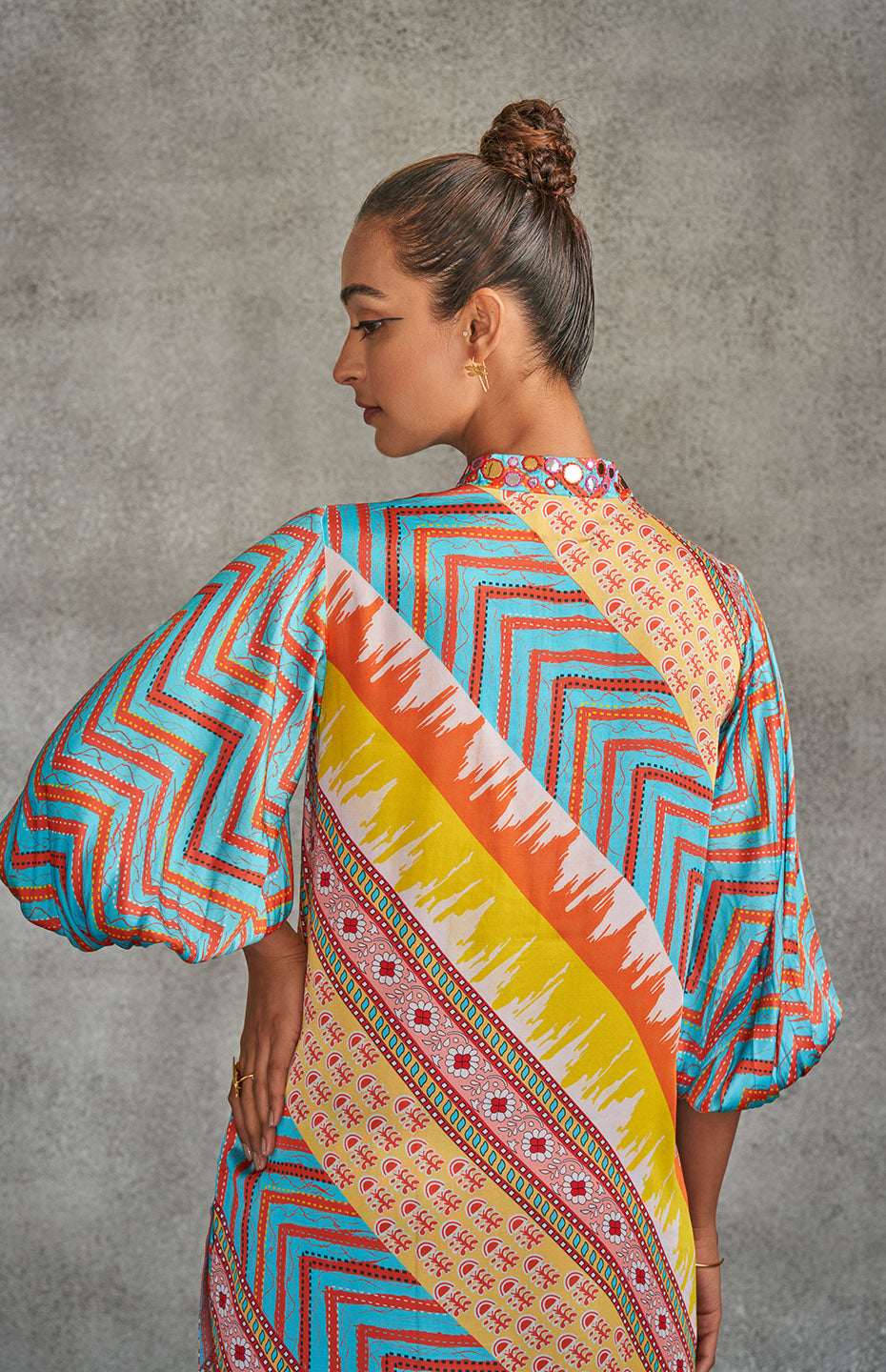 Revel in the richness of tribal traditions married to modern hues in our Kurti, a symbol of intricate workmanship and contemporary style.