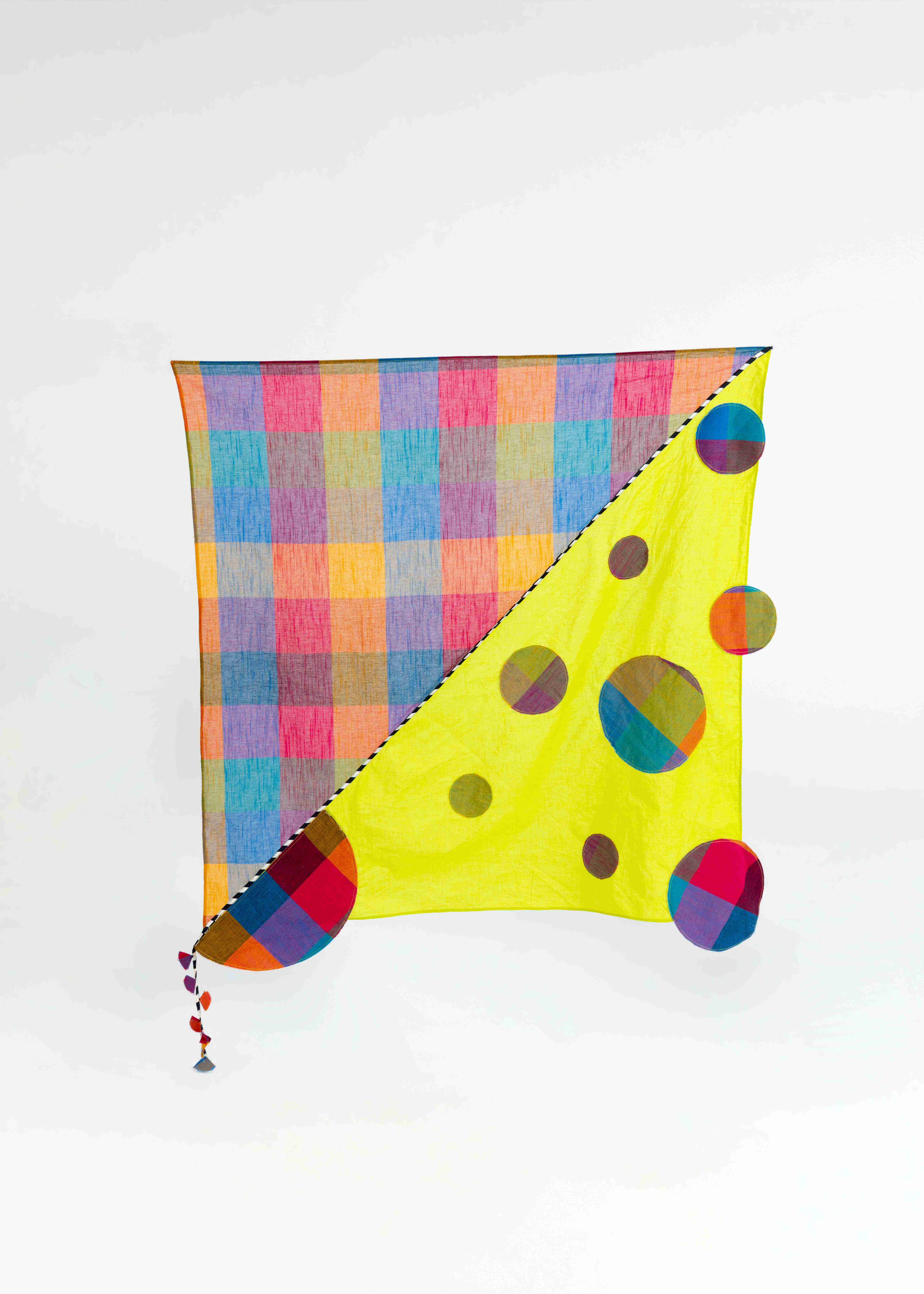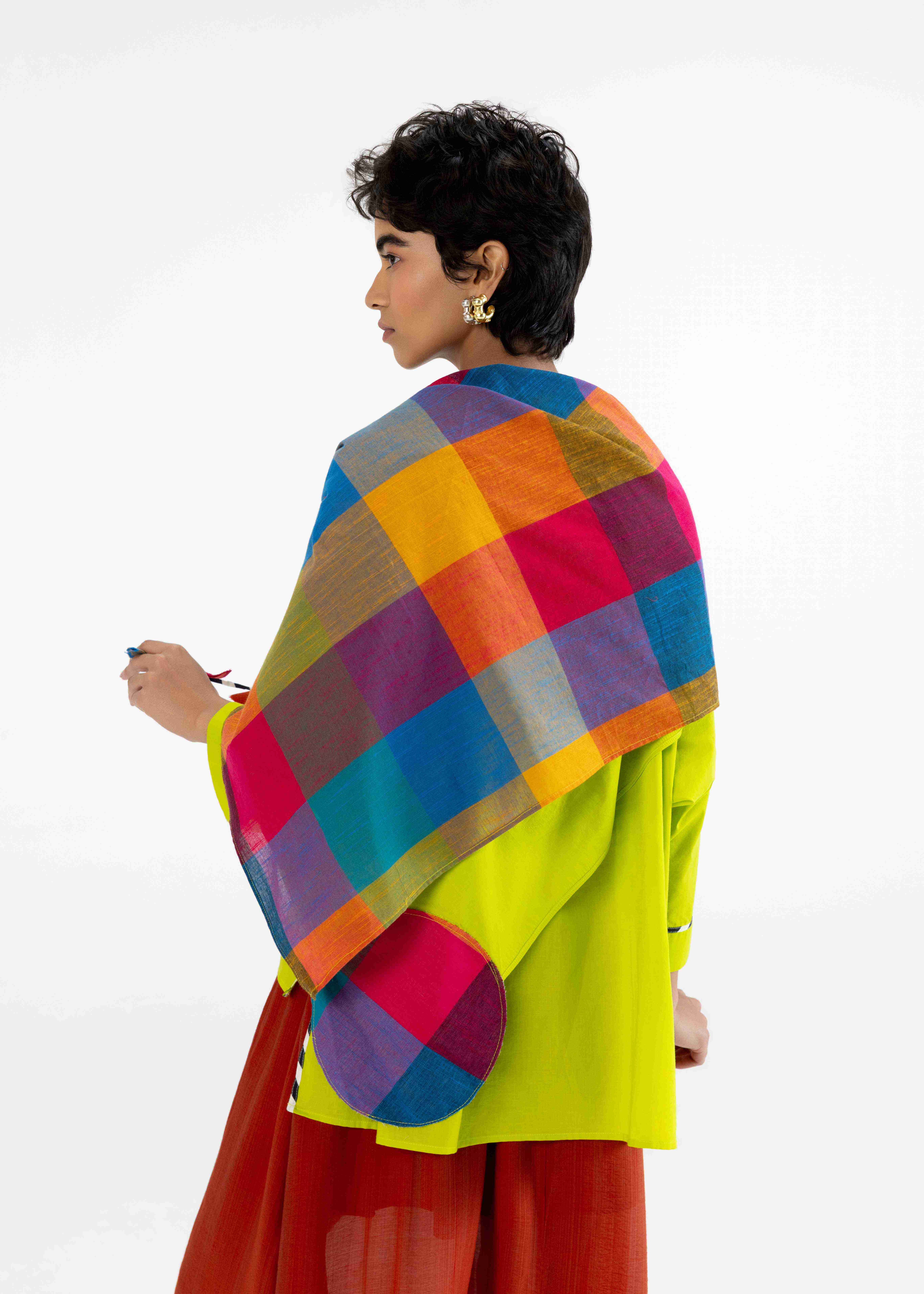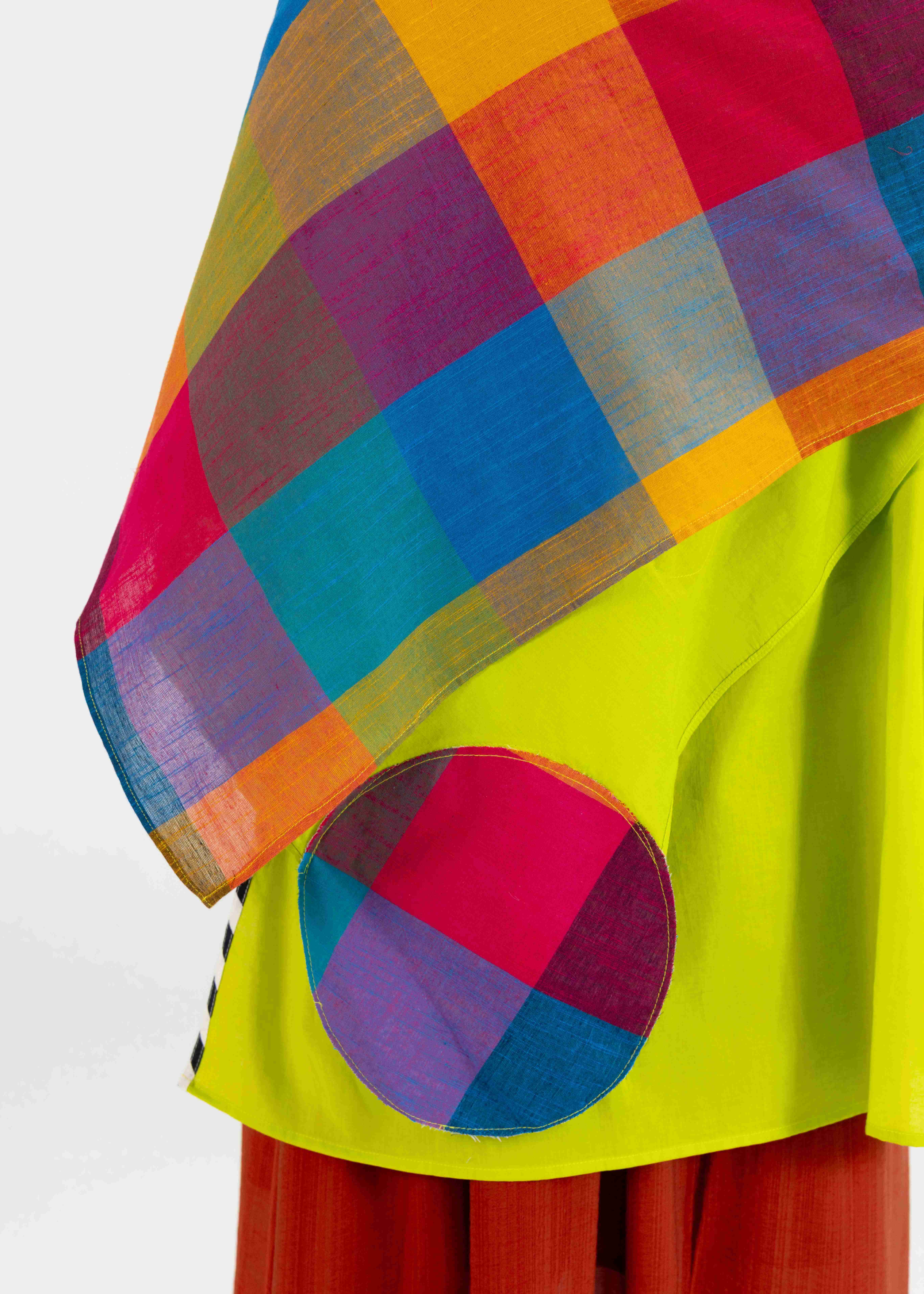 Lime Green Relaxed Oversized Kaftan Top Featuring Playful Multicolour Polka Appliqué, Monochrome Printed Piping, Designed For Effortless Comfort, Elegance And Easy Styling.