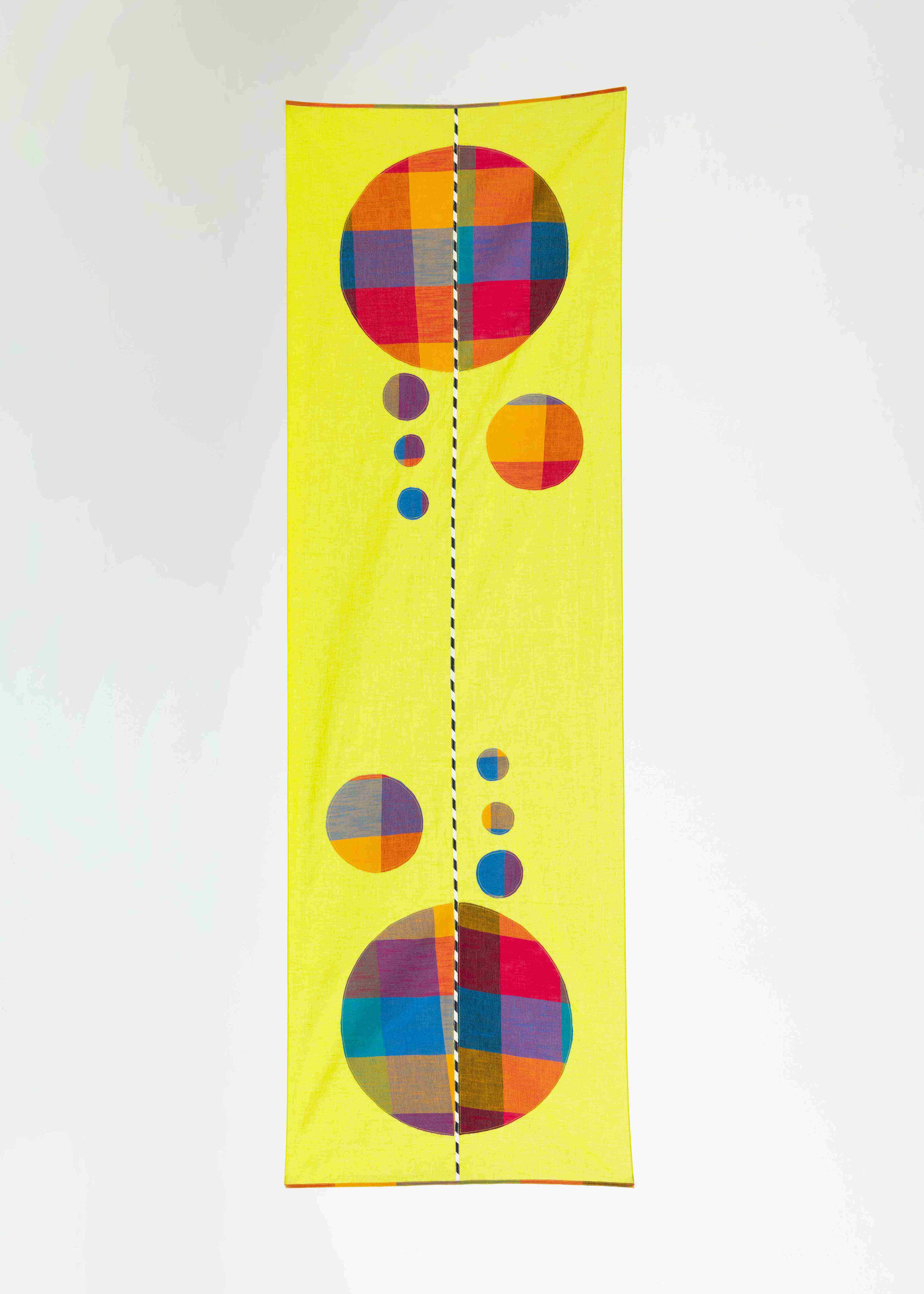 A Versatile Lime Green Stole Crafted To Compliment Both Casual And Evening Outfits, Featuring Multicolour Polka Appliqué With Monochrome Printed Piping That Enhance Modern And Playful Touch To Any Ensemble