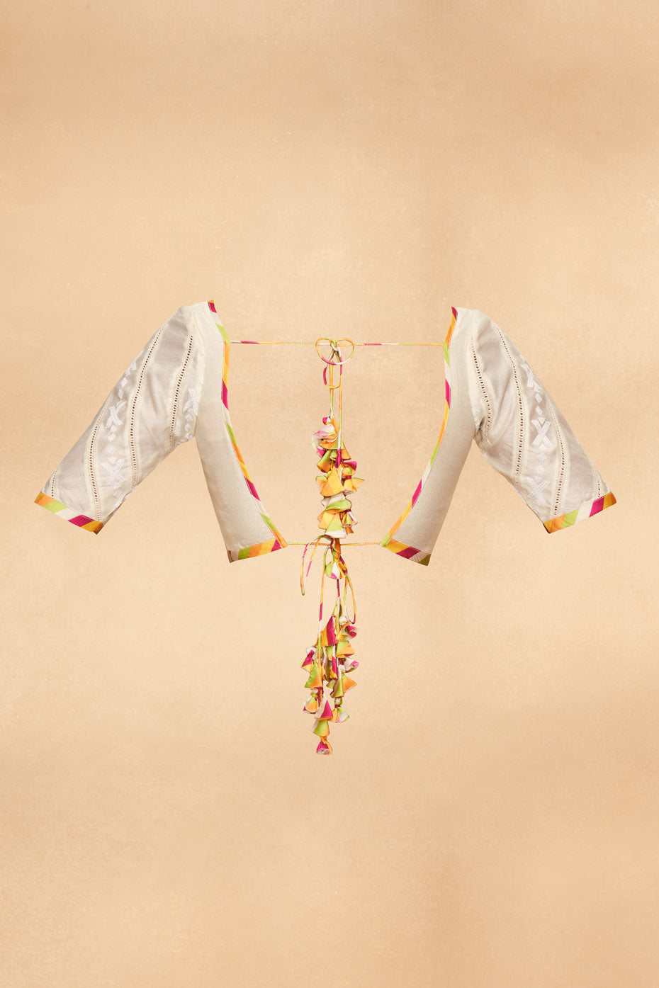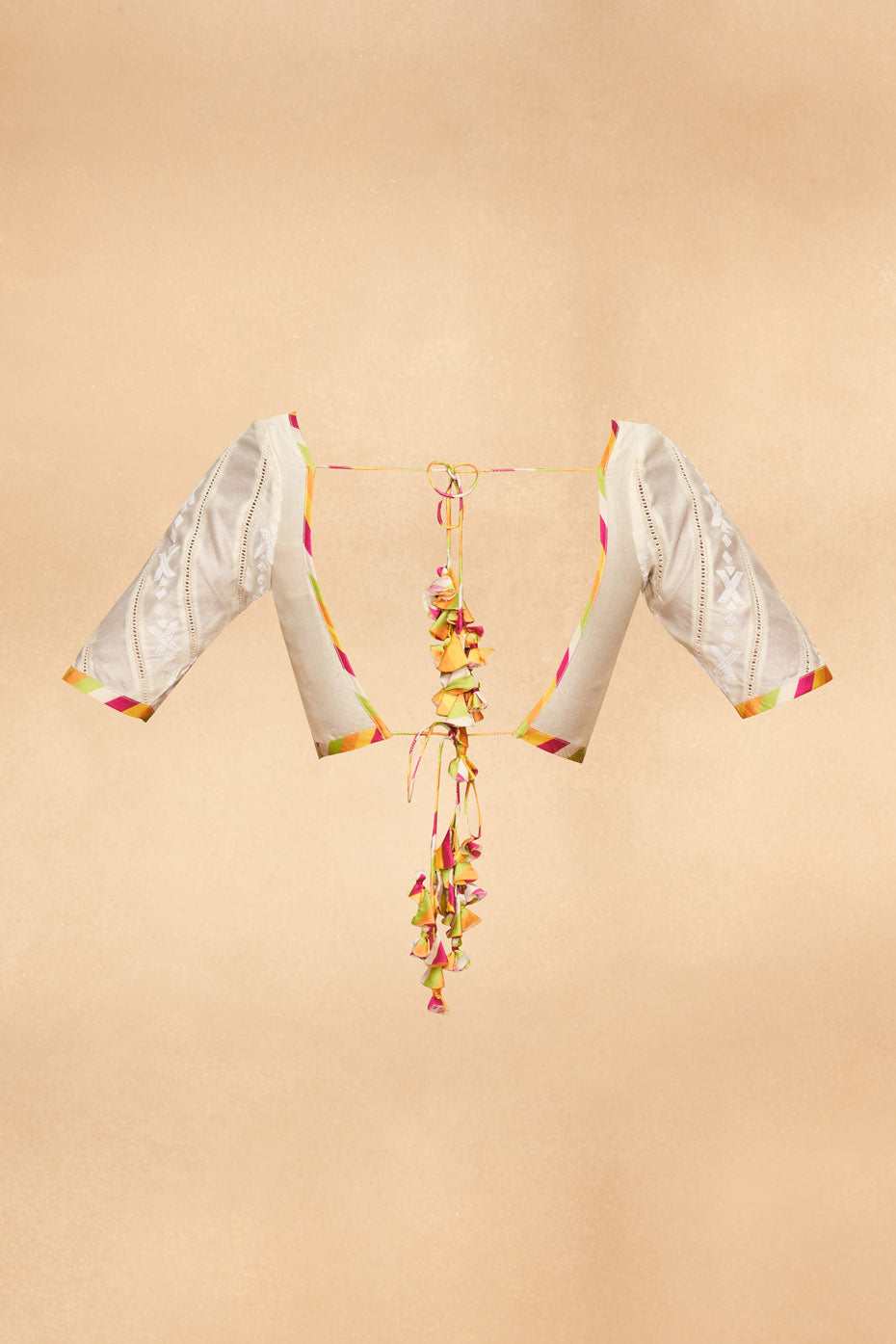 Our Blouse with Back Tie Up Tassels in vibrant sorbet hues adds a whimsical touch to your wardrobe, perfect for those looking to make a style statement.