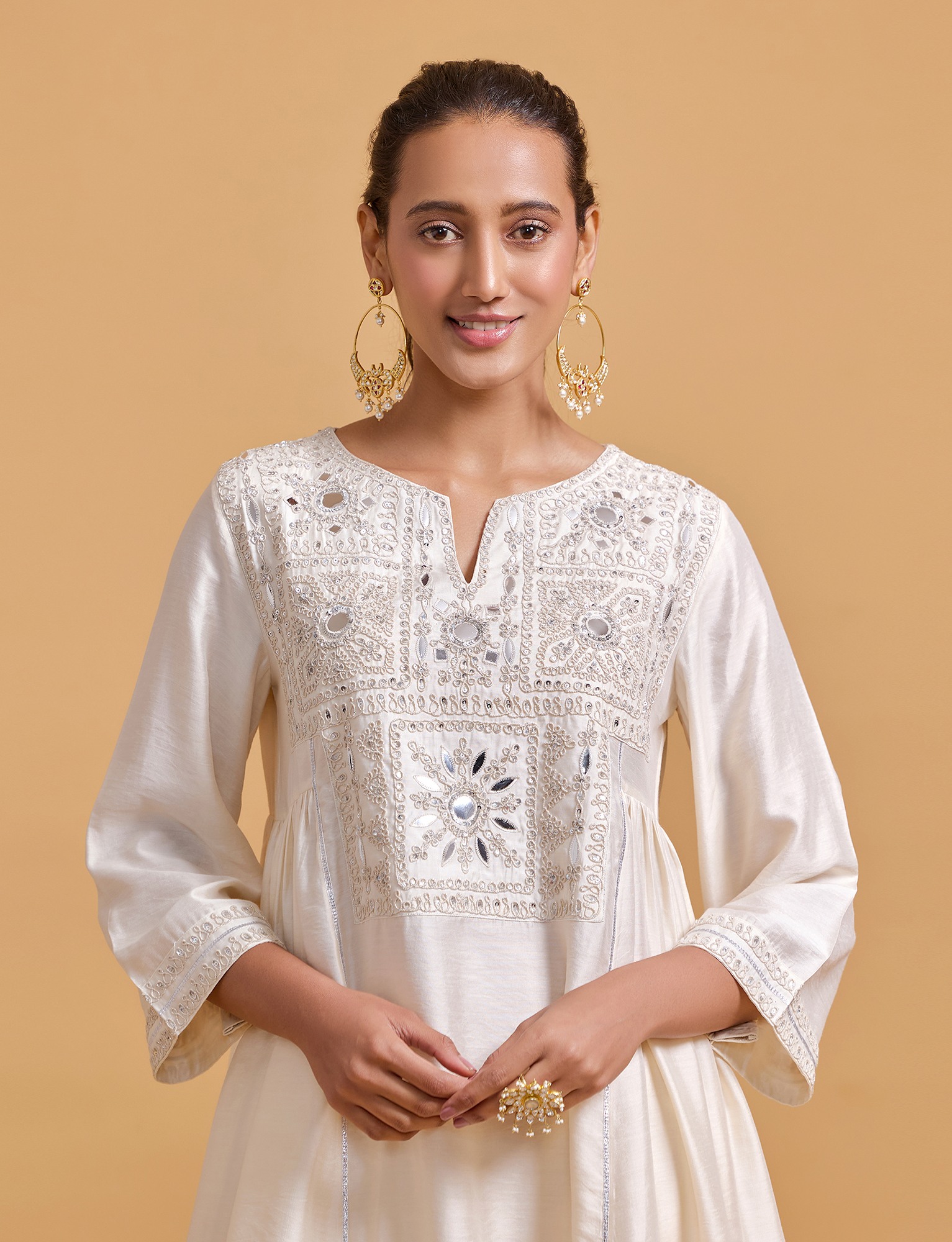 Zeenat Offwhite Gathered Kurta Set