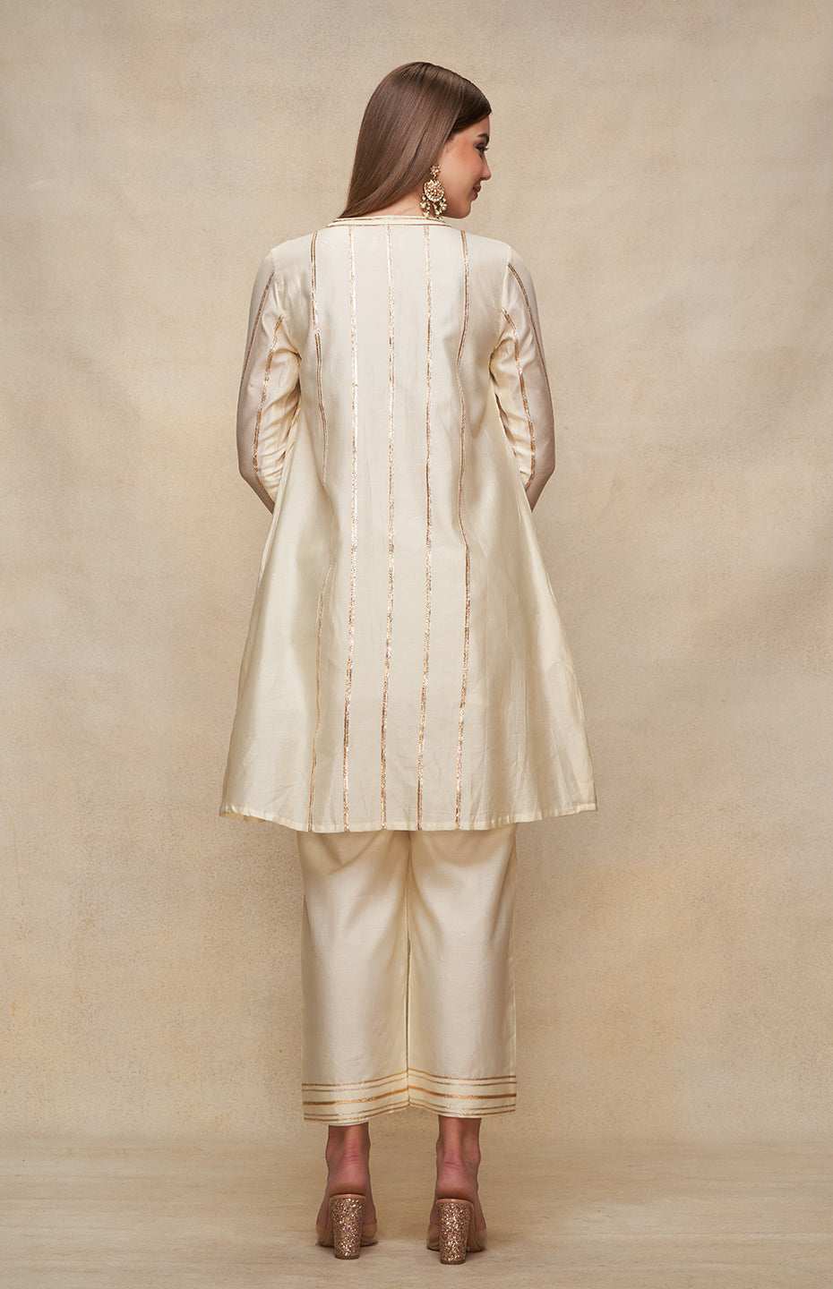 Home / Products / Dresses / Gulabo By Abu Sandeep / Off White Open Gota Kurta Dress