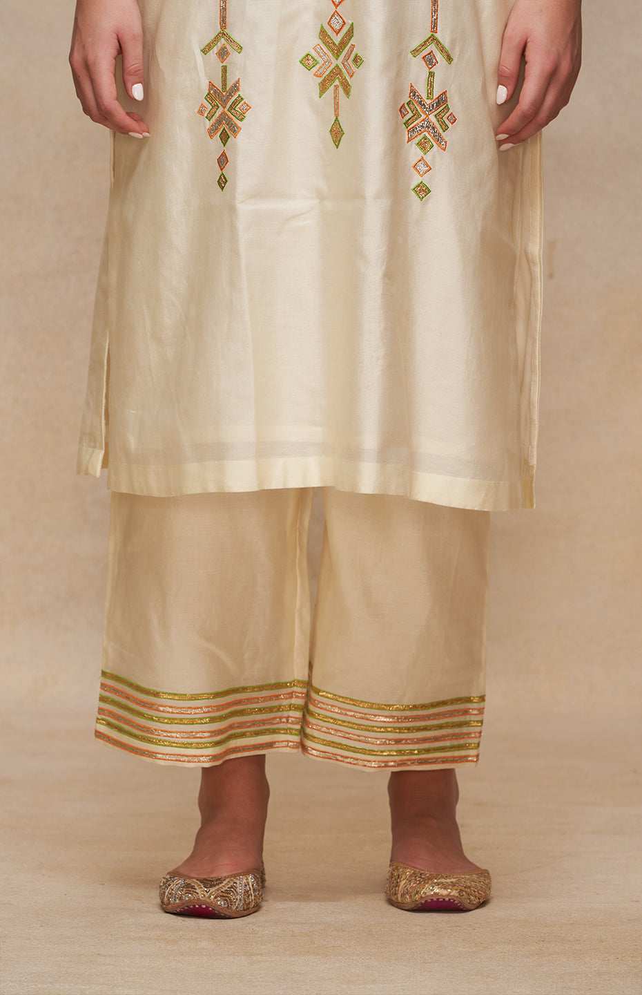 Simple gota embroidered straight pants.