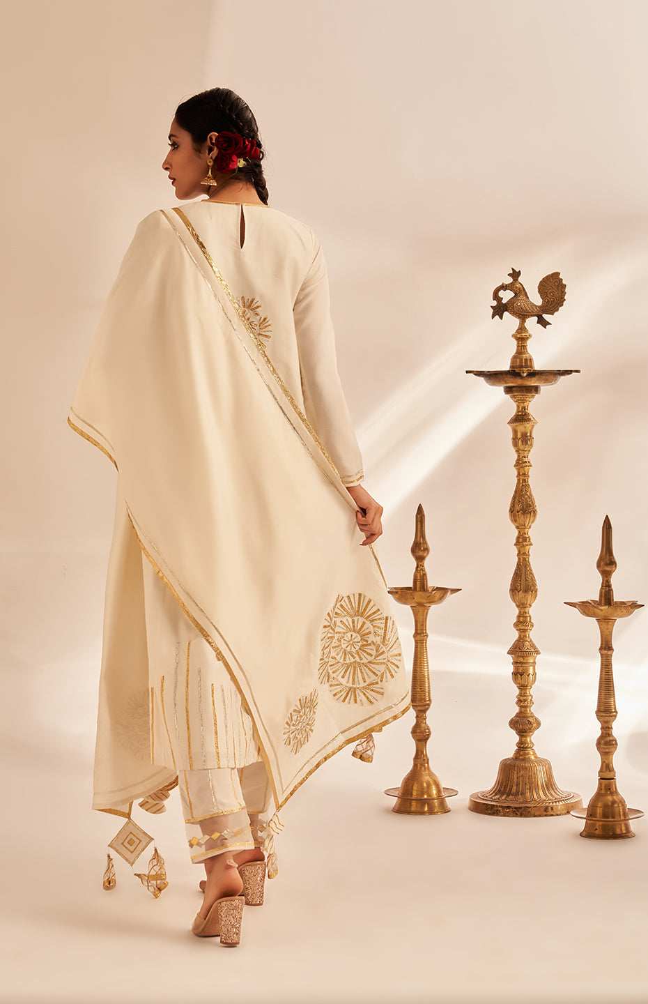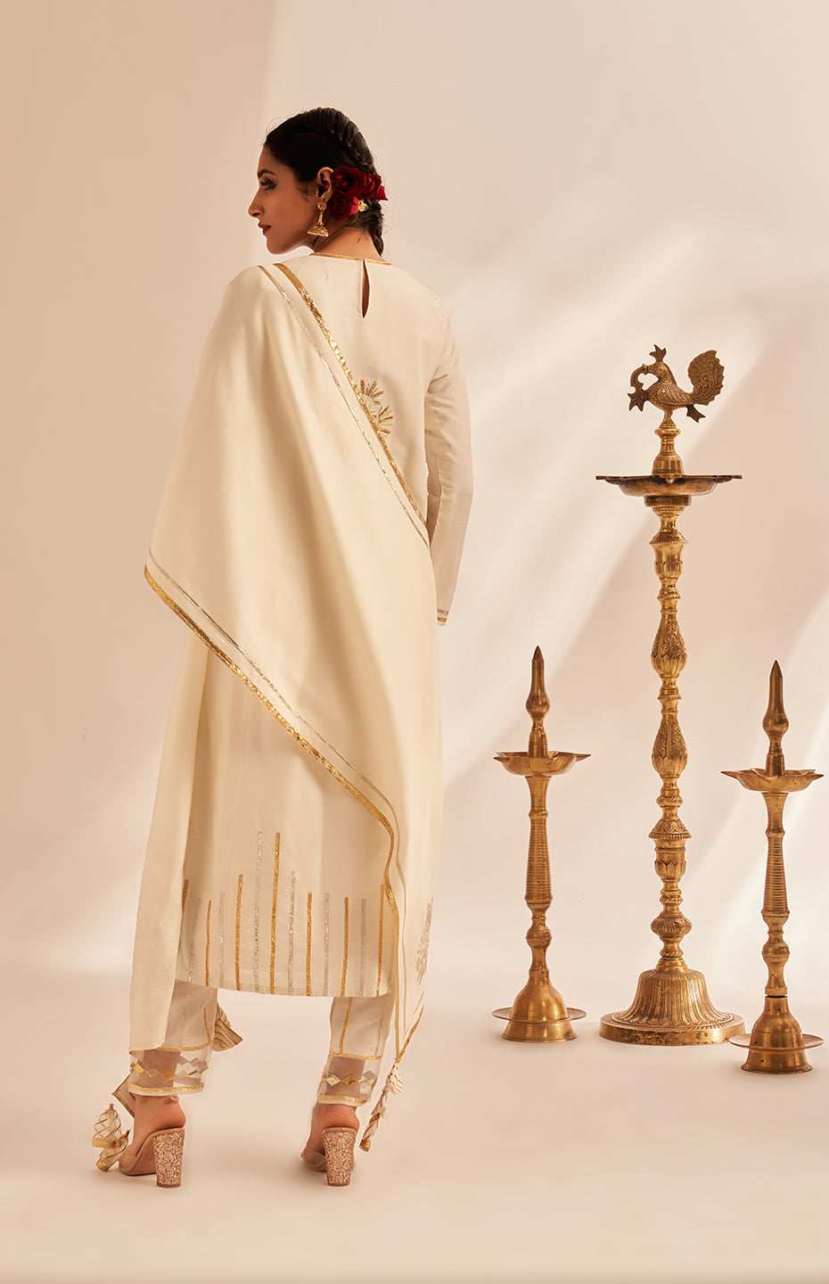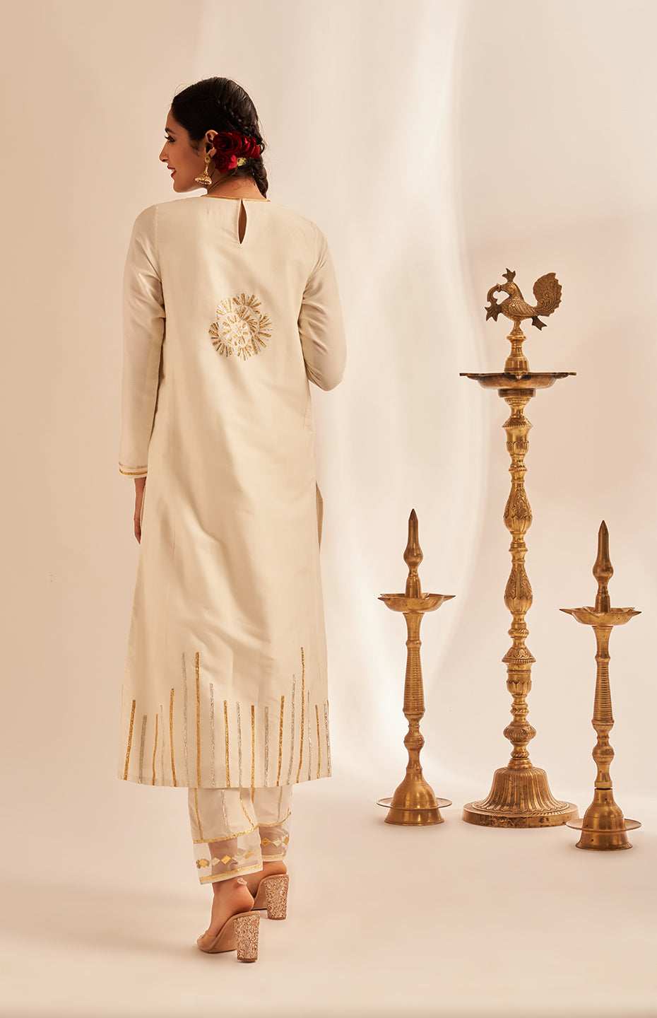 Off White Rose Gota Kurta