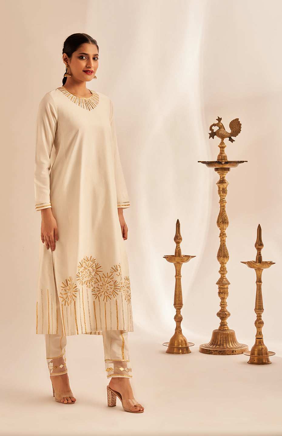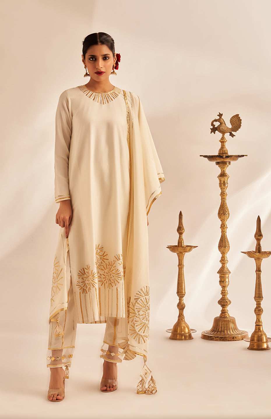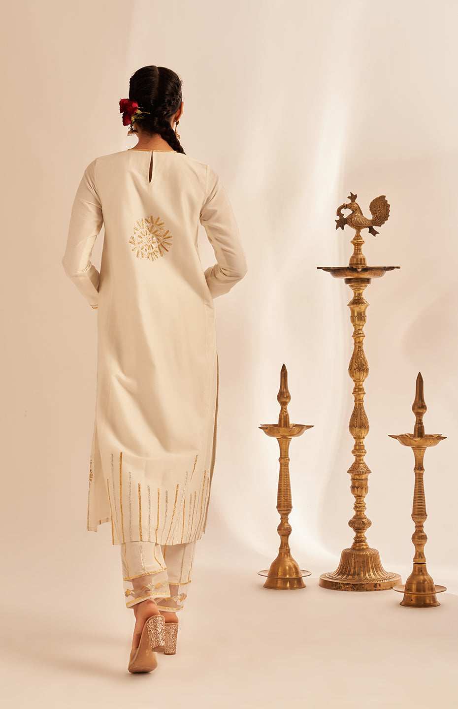 Off White Rose Gota Kurta