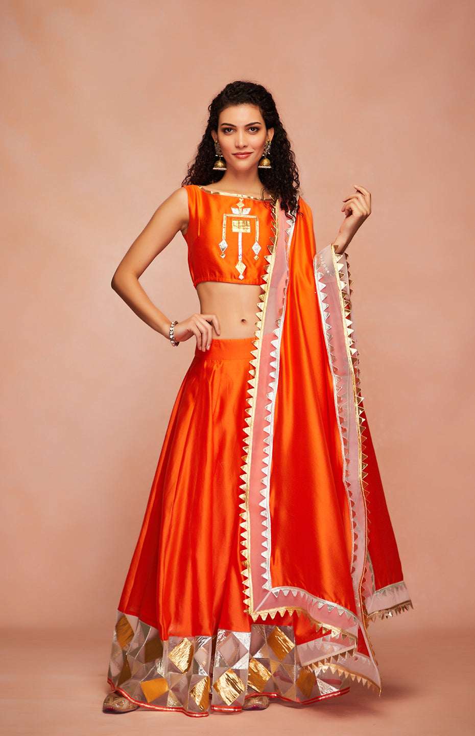Orange Chanderi Silk Gota Dupatta