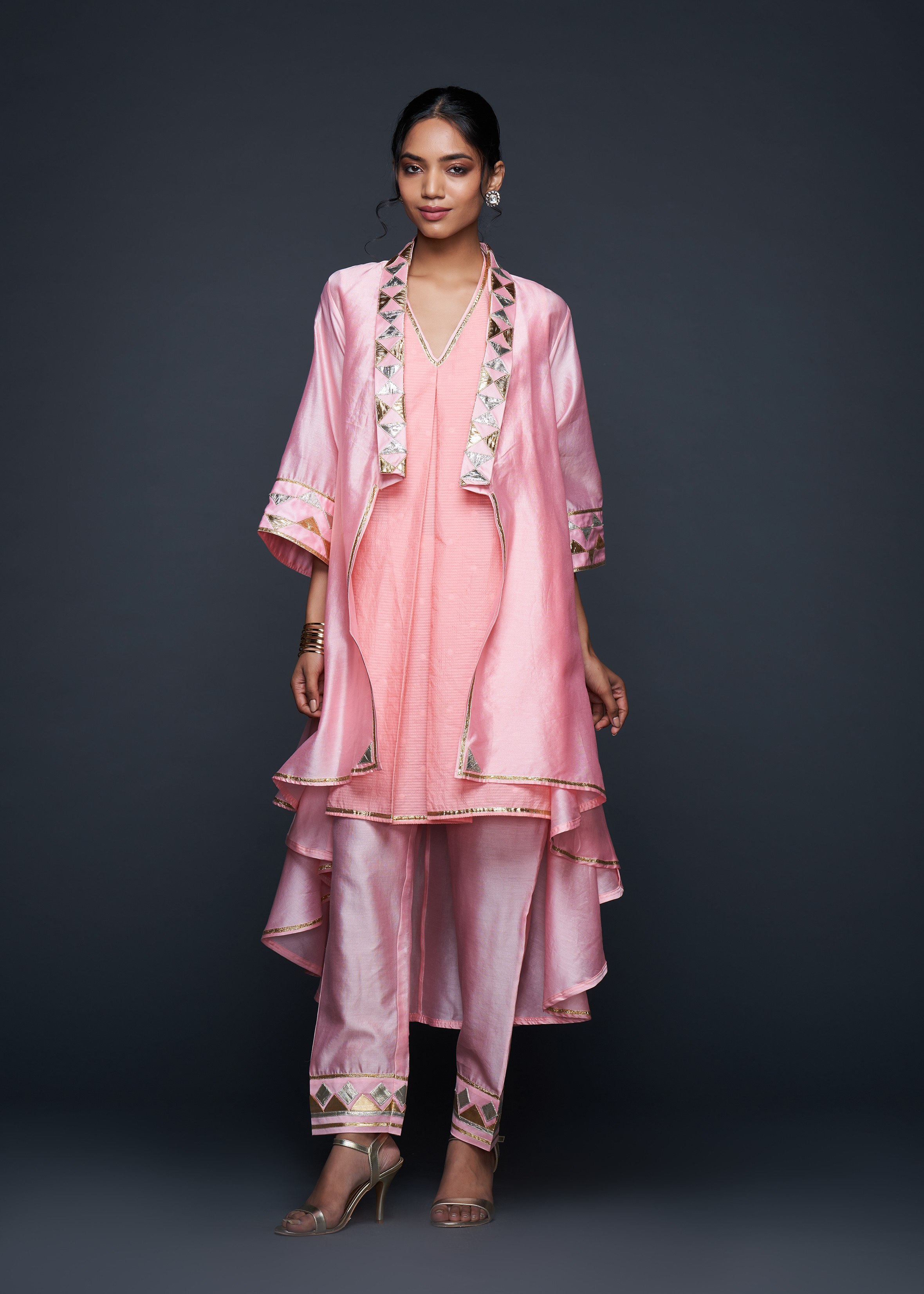 Home / Products / Ethnic Jackets / Gulabo By Abu Sandeep / Peach Gota Coat Set