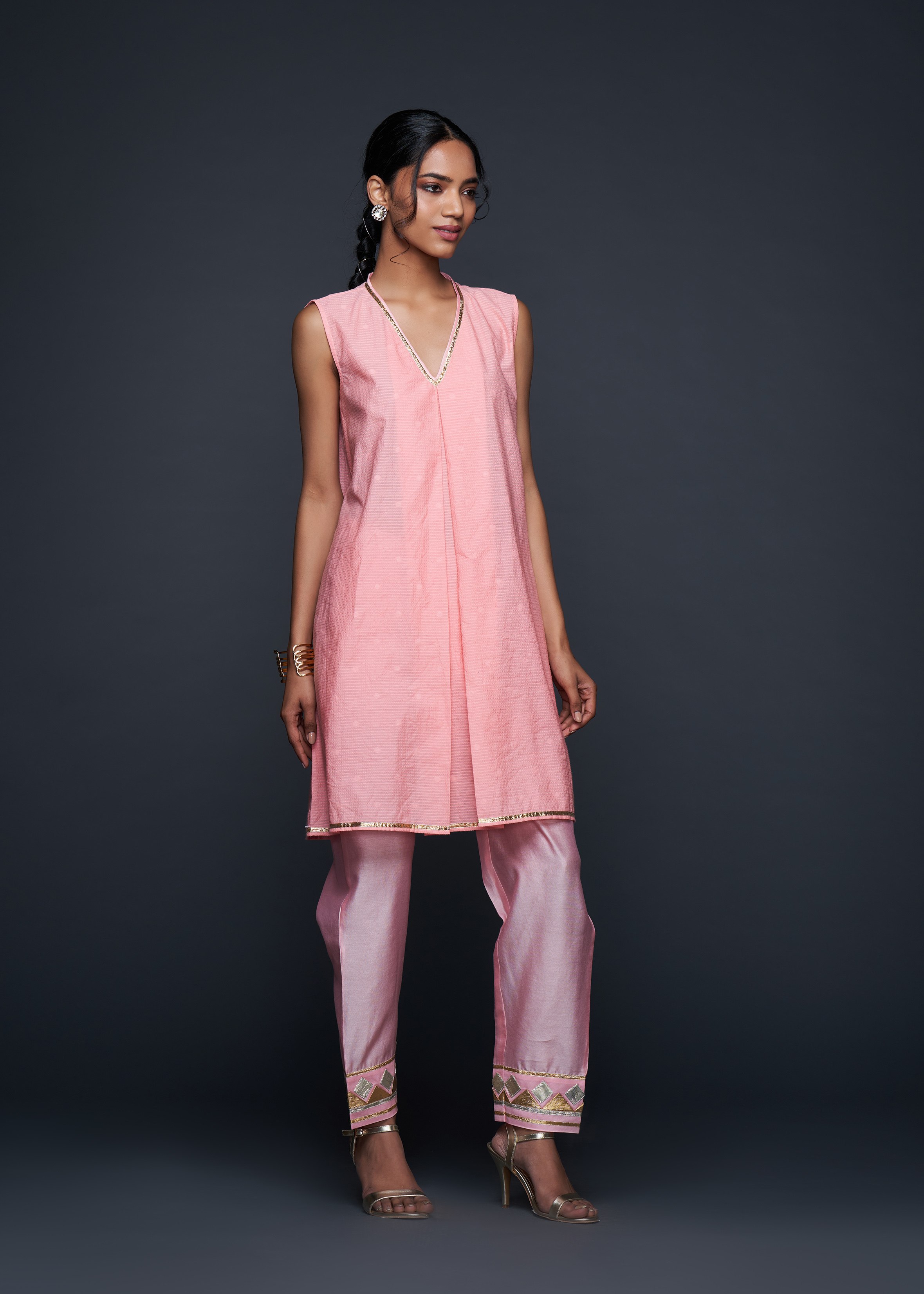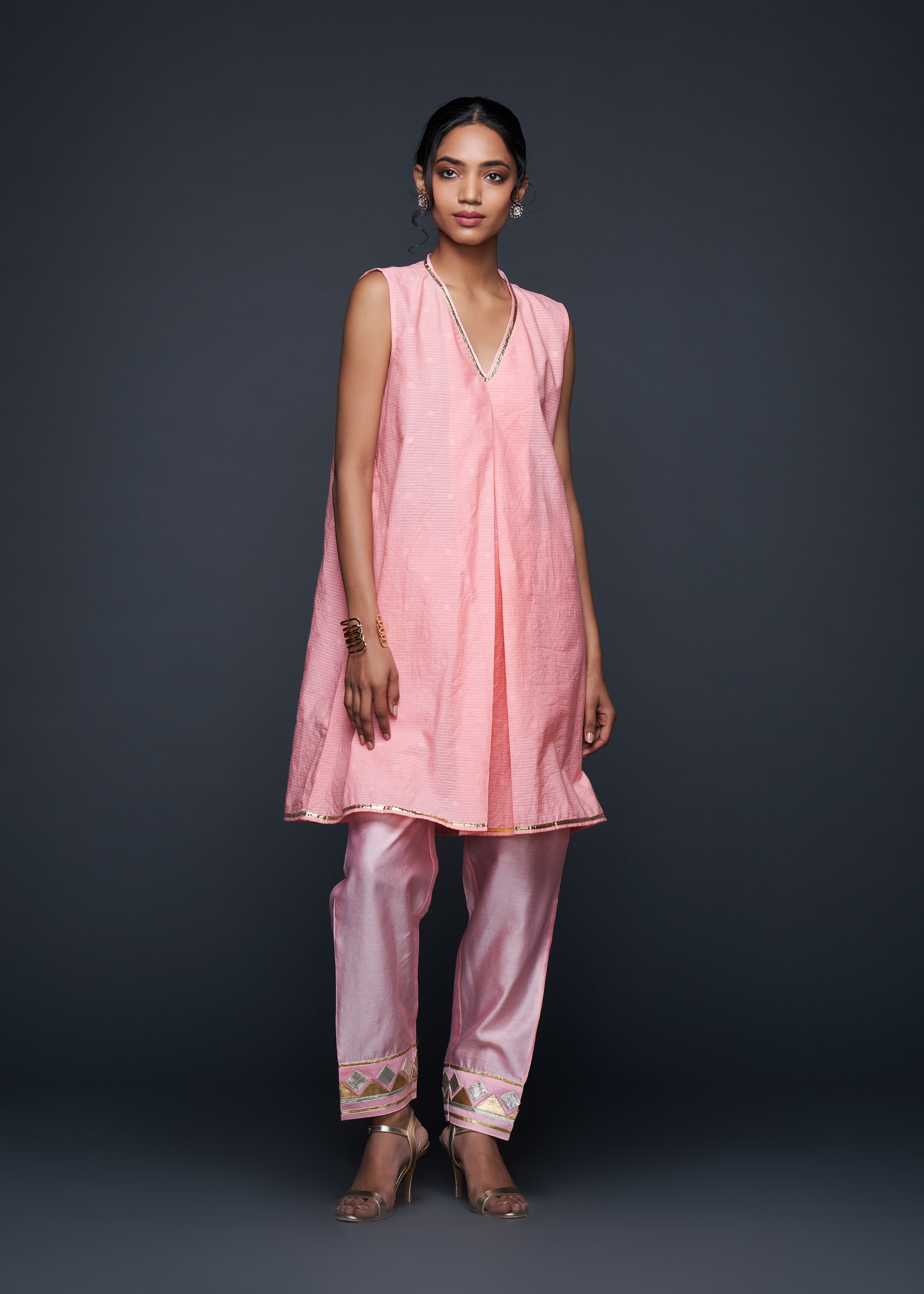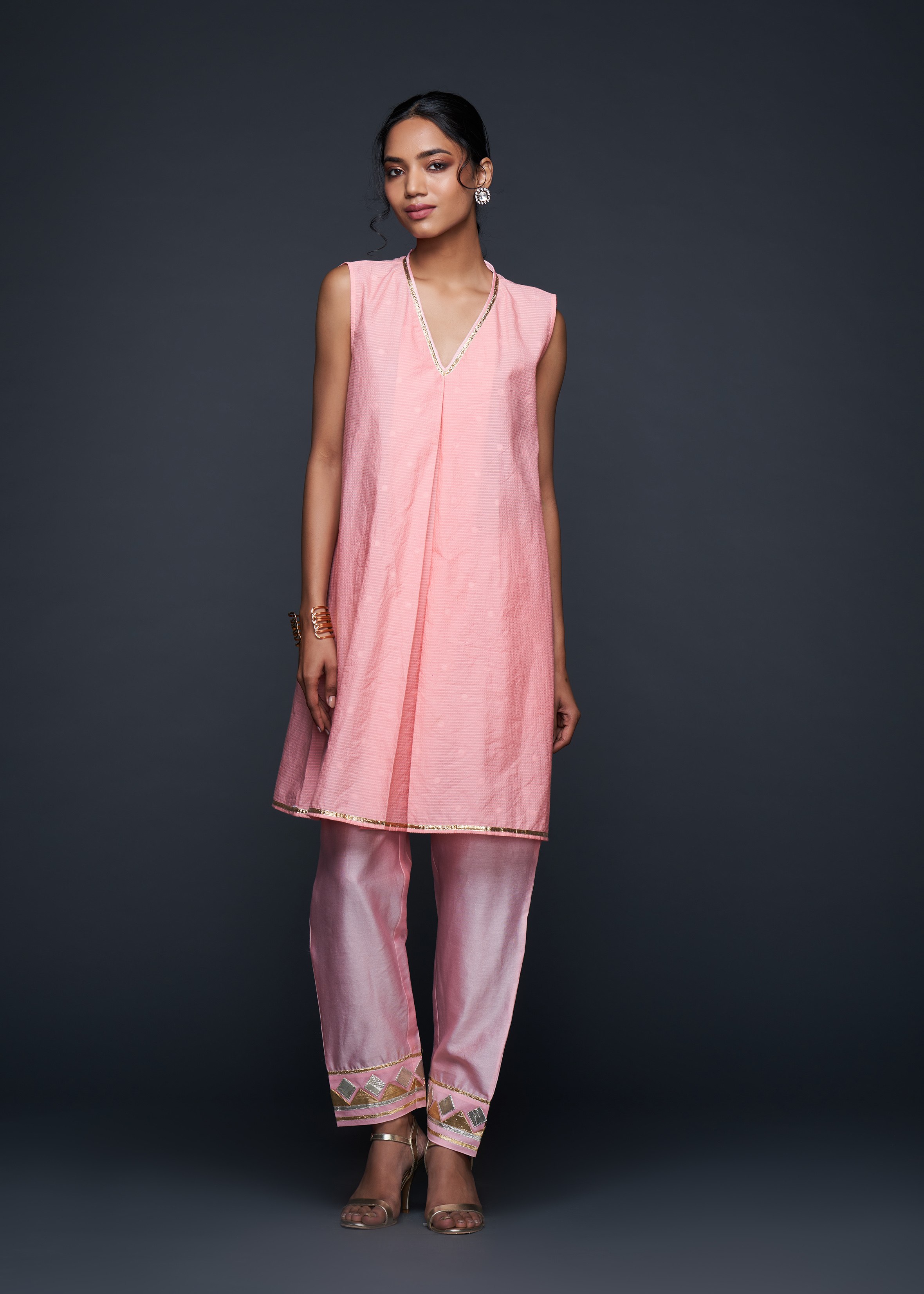 This Coat Set, including an inner slip, represents the pinnacle of layered elegance. The gota appliqués offer a contemporary twist on traditional attire.