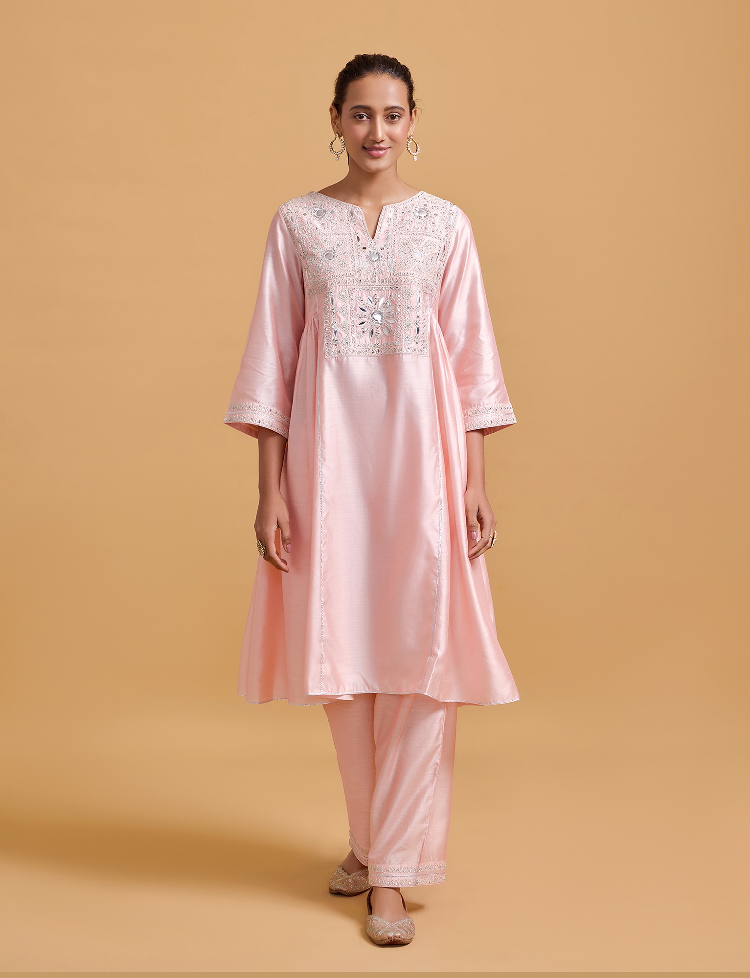 Zeenat Pink Gathered Kurta Set