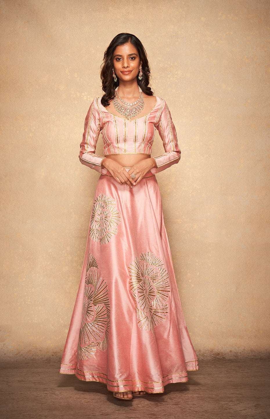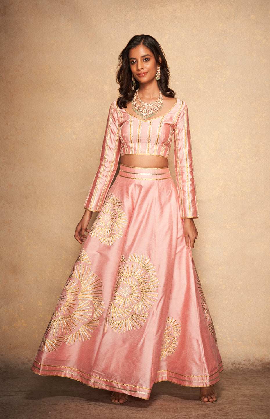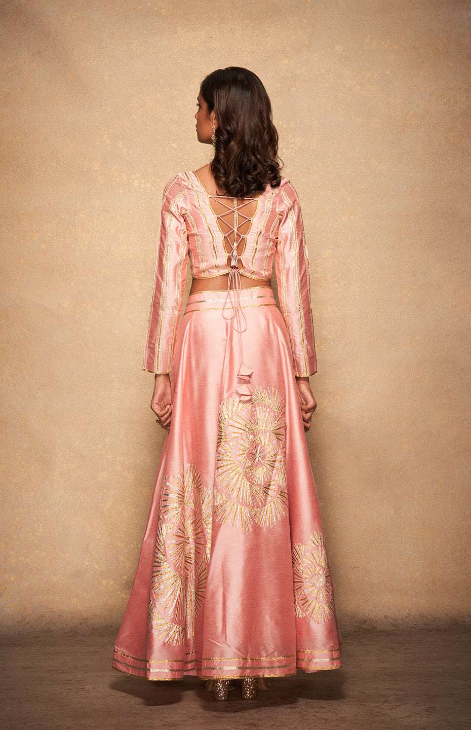 The Full Sleeve Blouse from our Rose collection is a perfect blend of traditional craftsmanship and modern design. It features an exaggerated paan neckline and a backless dori detailing that adds a touch of elegance.
