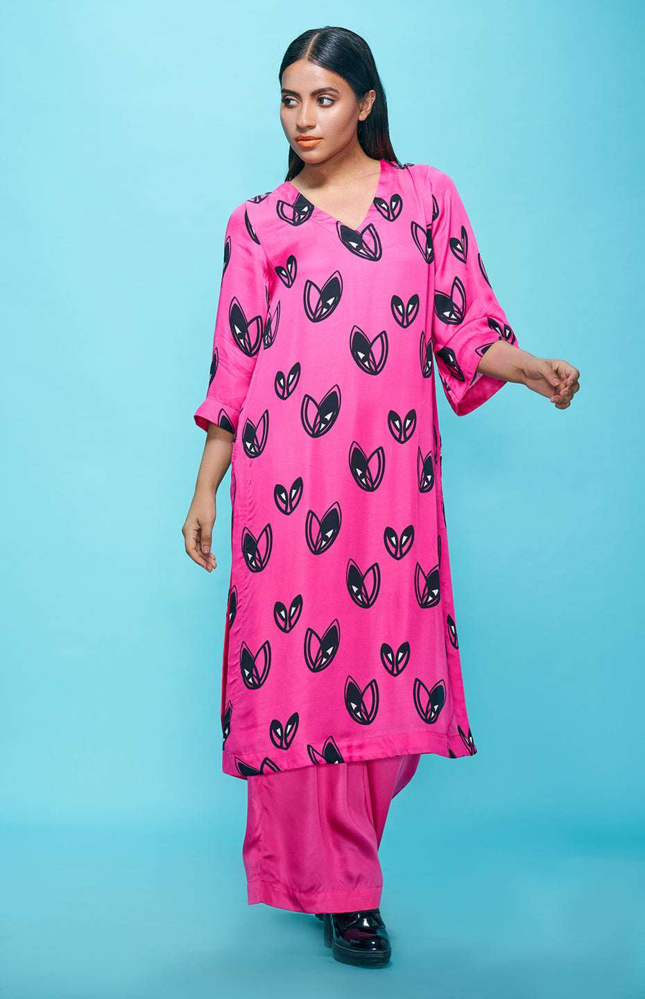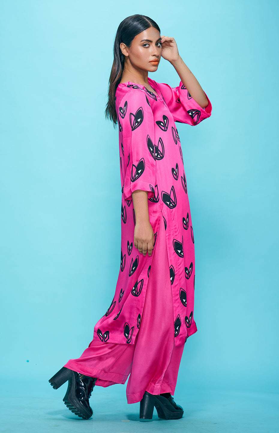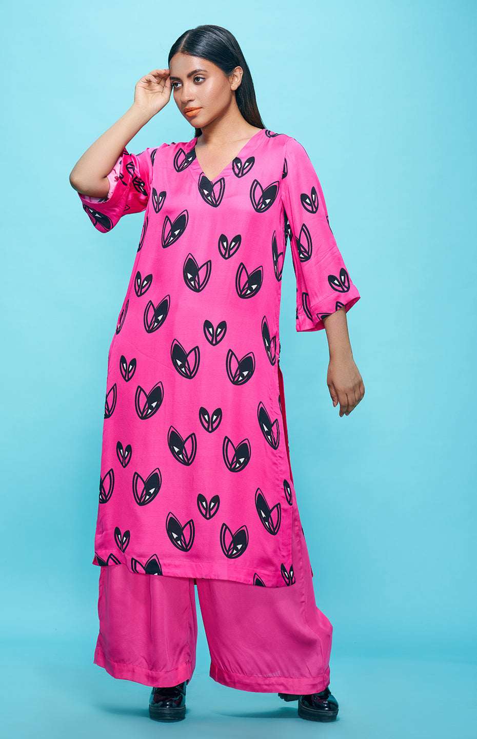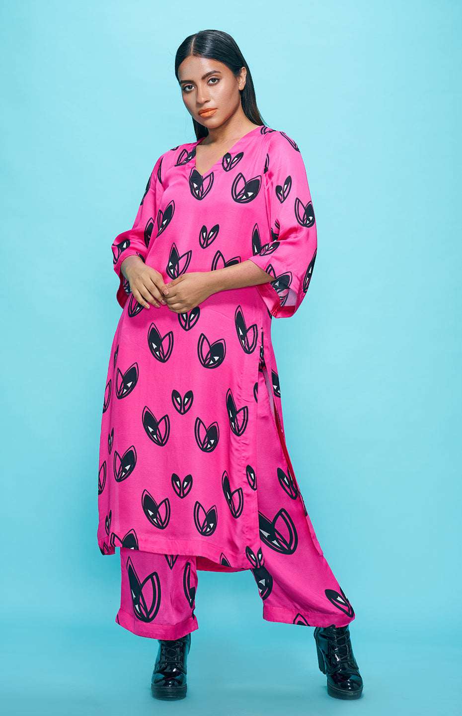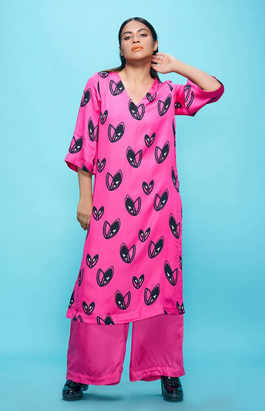 Add a touch of elegance to your wardrobe with this stunning Pop Hearts Tunic. Made from luxurious Viscose Satin, this tunic features a unique and playful heart motif that is perfect for dressing up any outfit. The flowy fabric make it comfortable and versatile, perfect for any occasion. The print placement variances will exist that will differ from the image of the product.