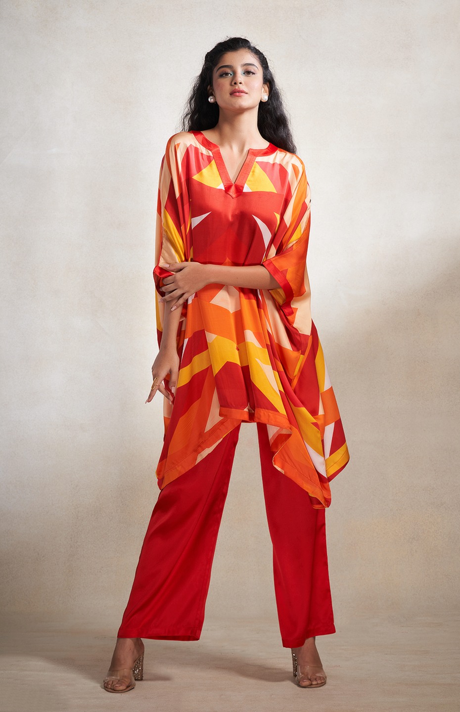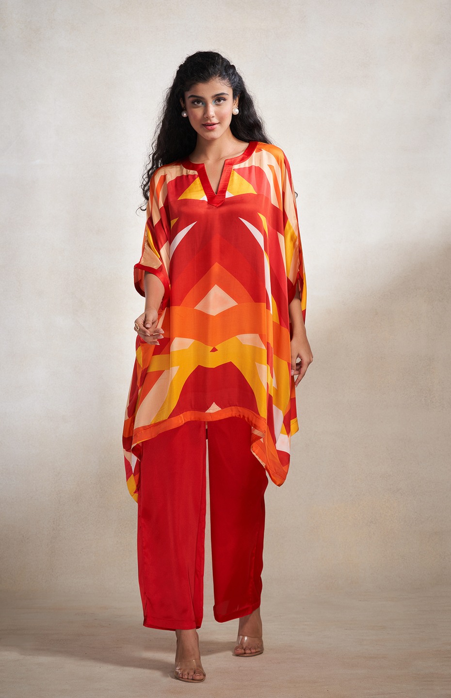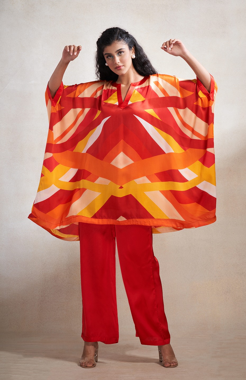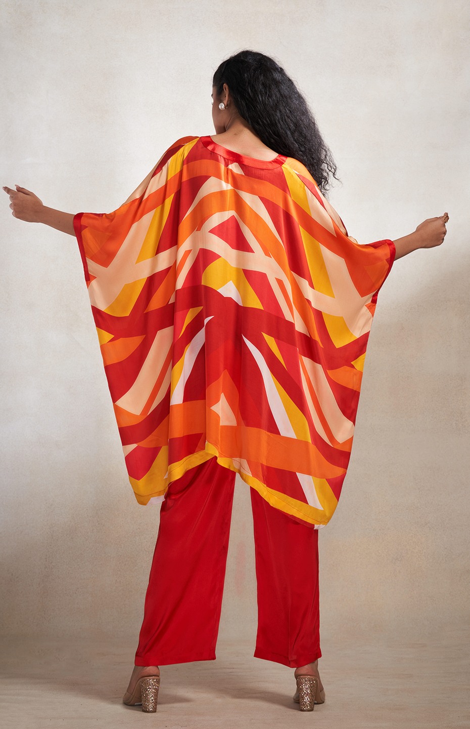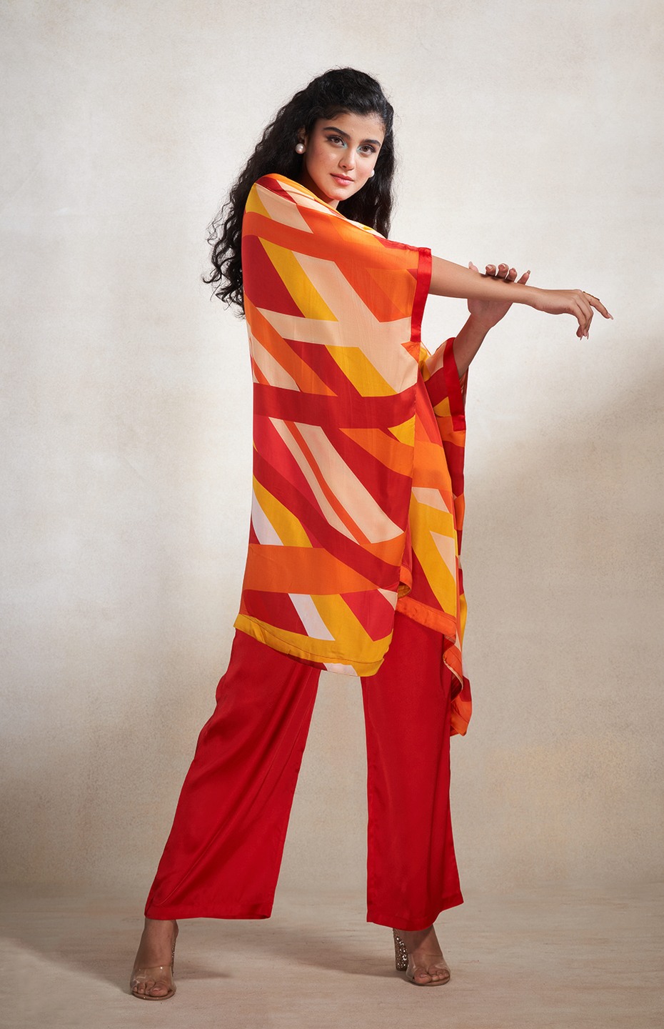 Red & Orange Abstract Poncho Kurta