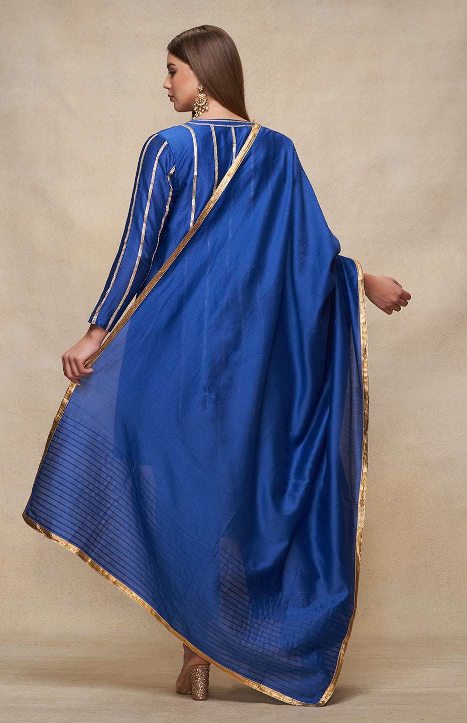 Elevate your ensemble with this gota dupatta. This piece seamlessly blends tradition with contemporary style. A versatile accessory, it pairs beautifully with any outfit in the collection.