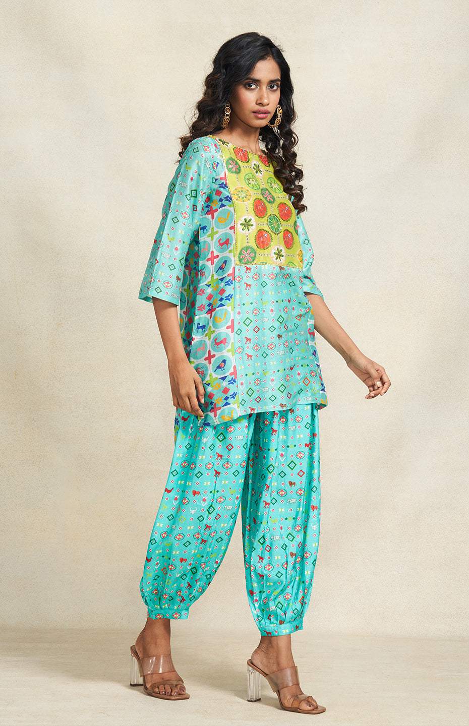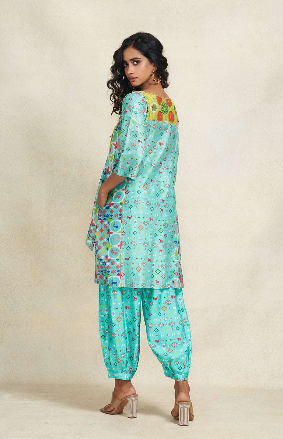 With a generous cut and playful drape, the Afgani salwar is a spirited piece that brings traditional flair to the "Yara" collection.