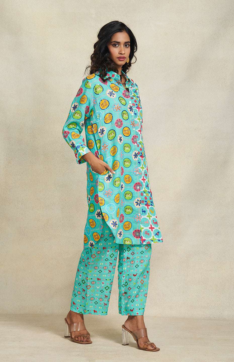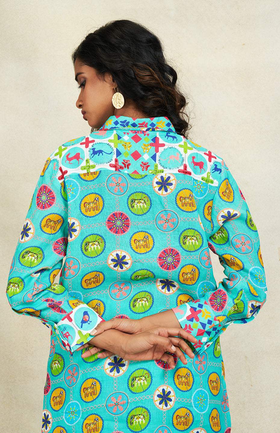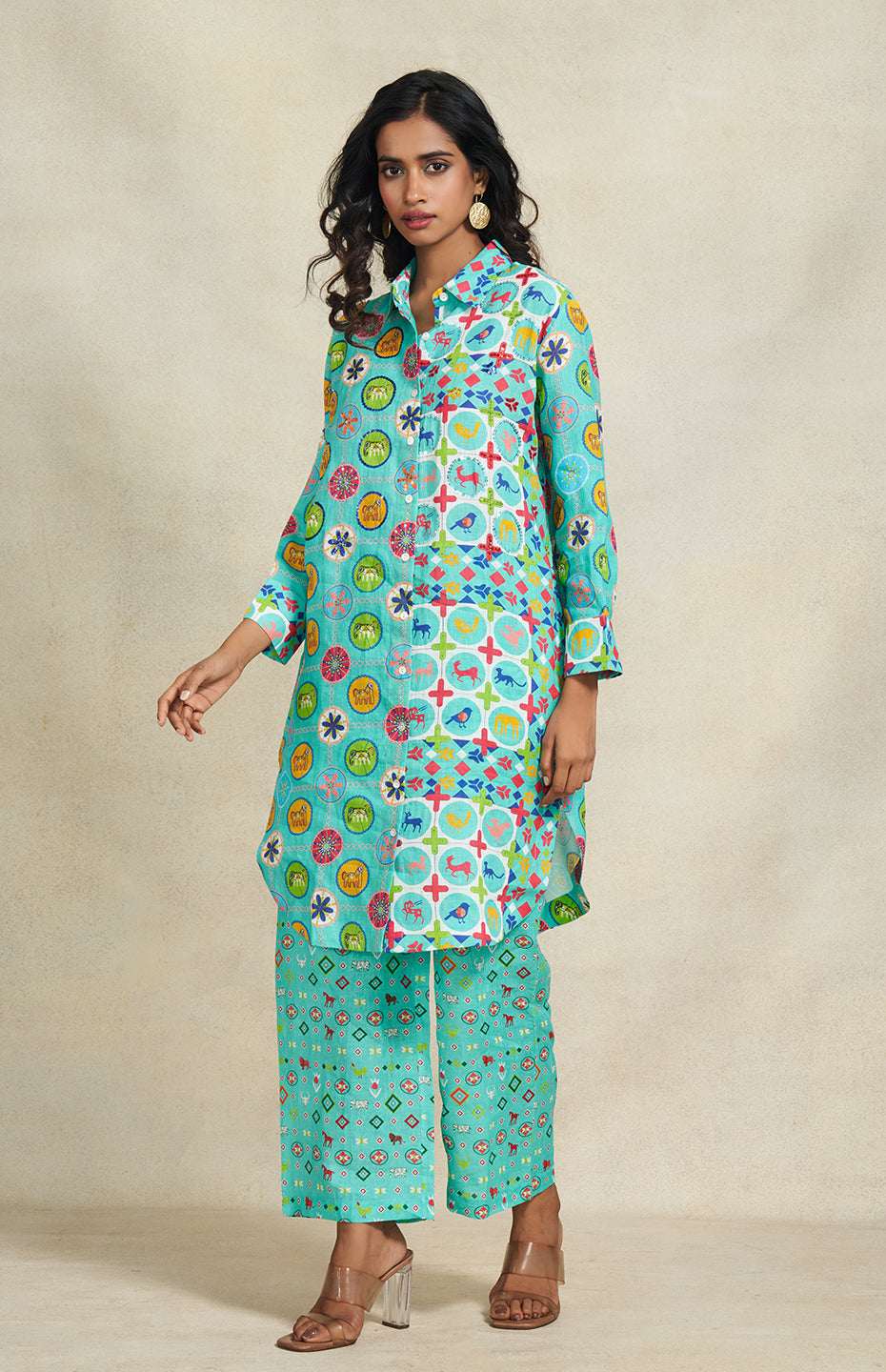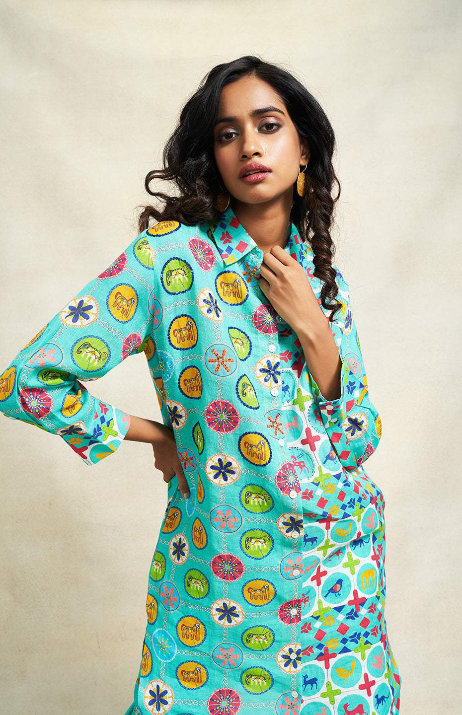 Envelope yourself in this linen shirt, meticulously detailed with sequins that bring a spark of adventure to a classic silhouette.